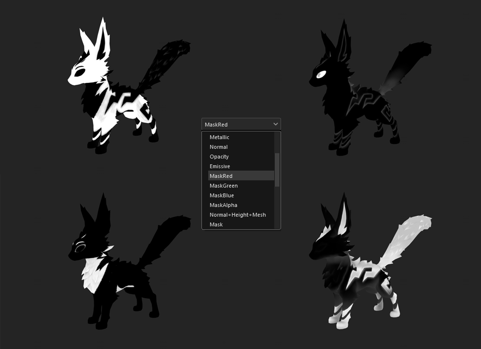 In total, the time saved in asset creation and feedback loops measured in weeks when compared to the first non-masked version of the pets. I could make adjustments in real-time alongside the art director without needing making adjustments in Substance Painter and re-exporting textures. This would also allow the team to add additional color palettes with no additional texture overhead.