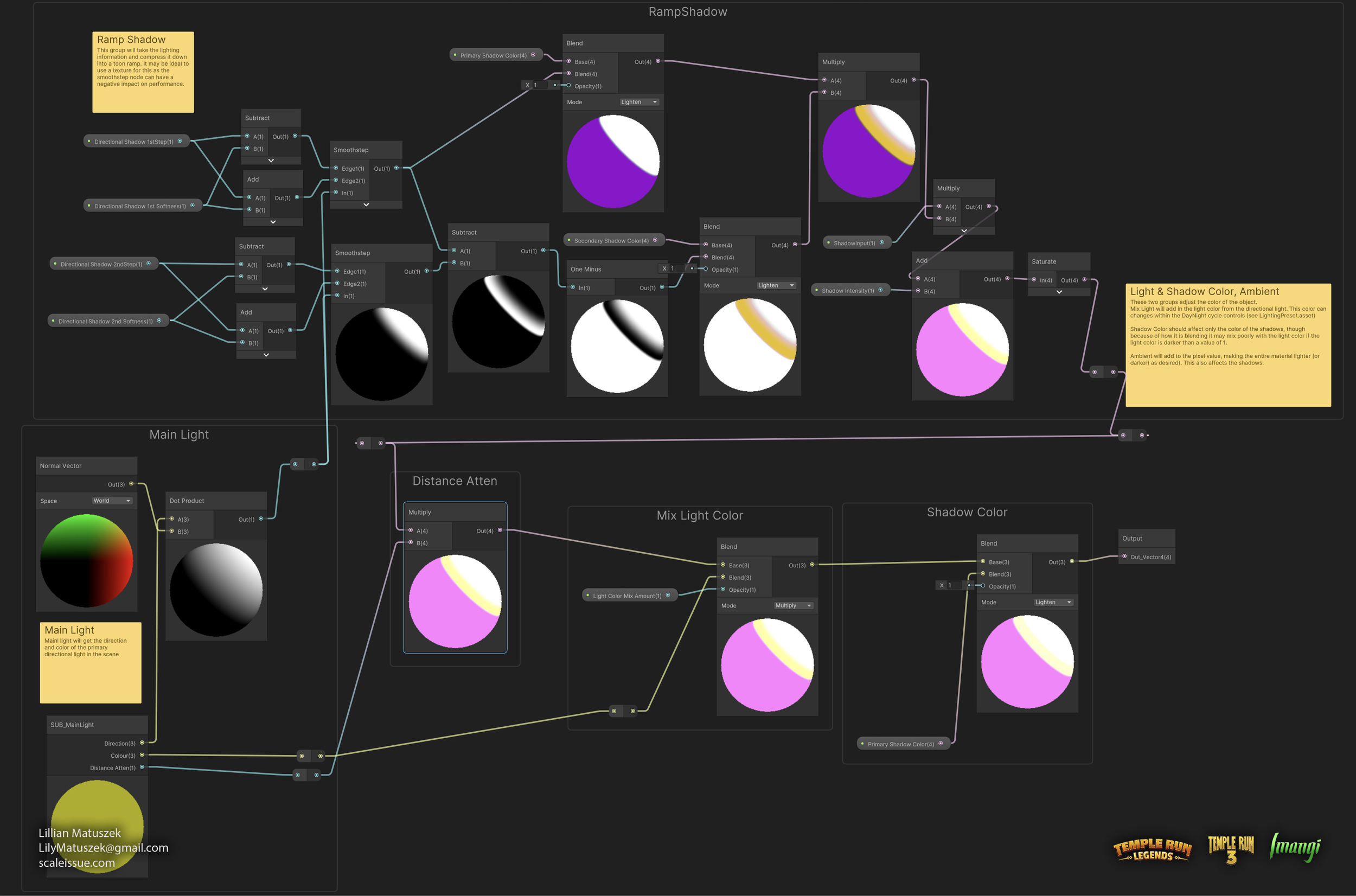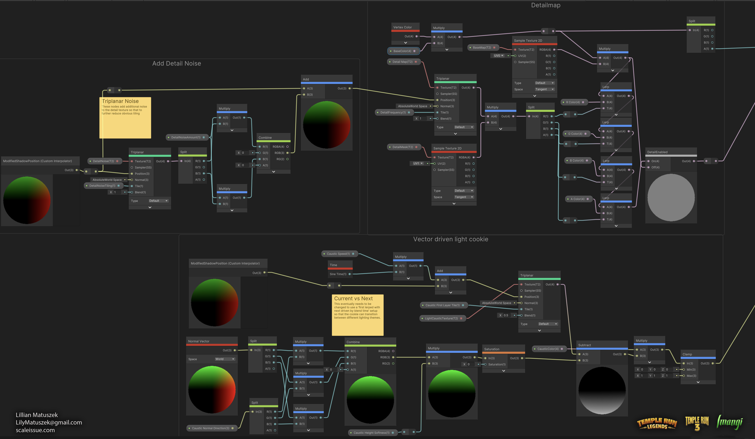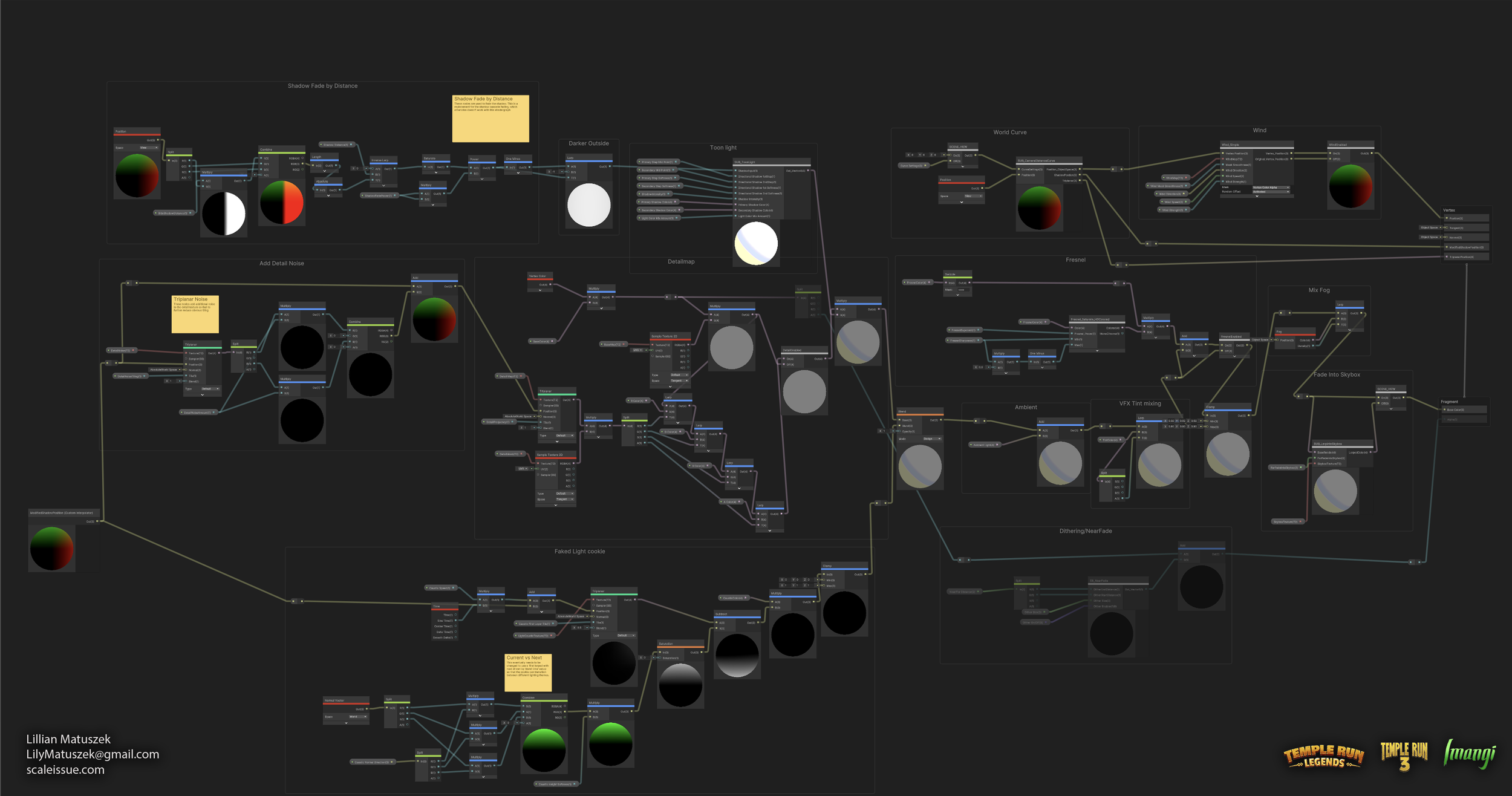 The core environment shader used on several Temple Run projects was a culmination of many different shader nodes and subgraphs, each with a specific purpose.